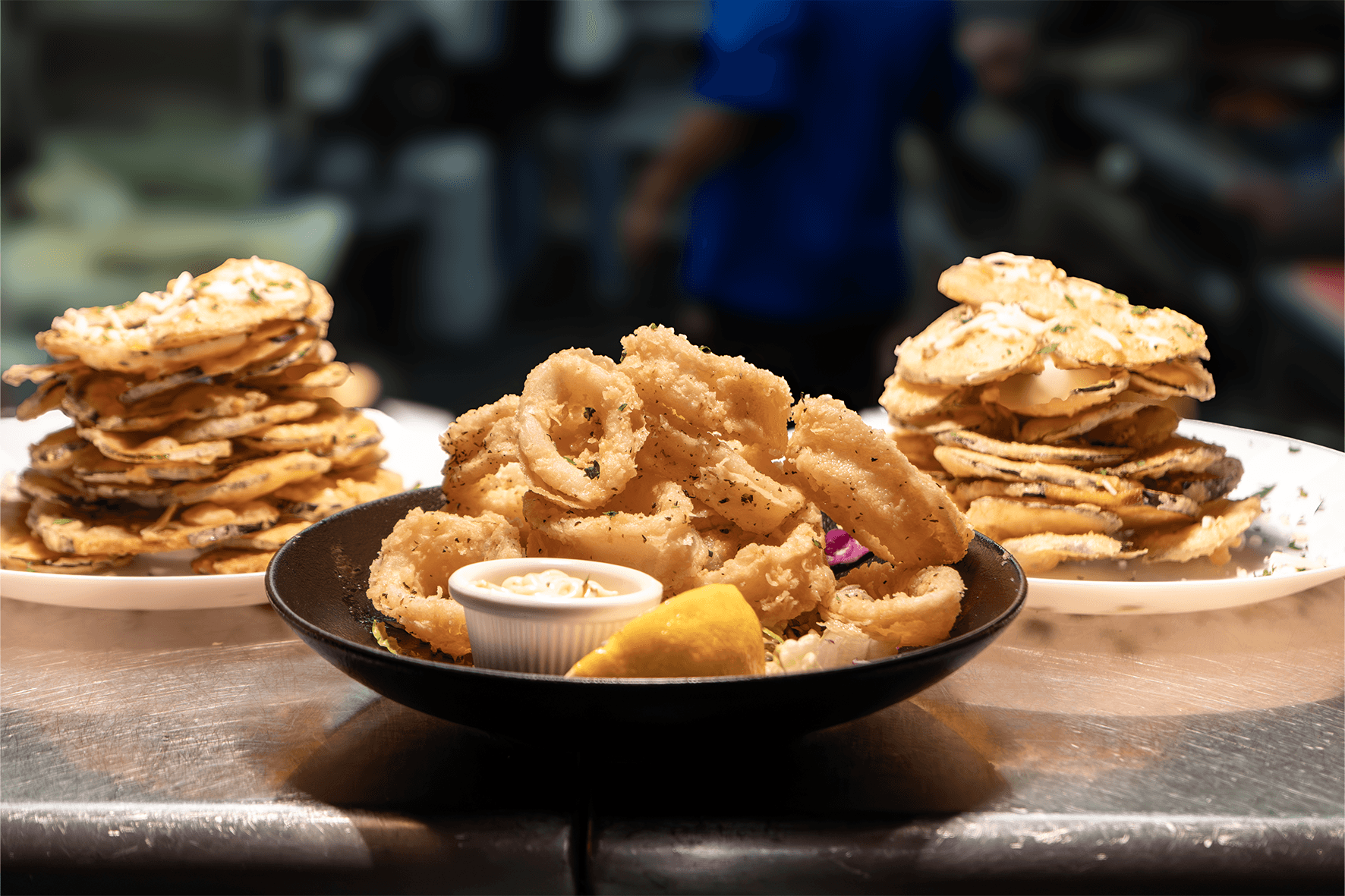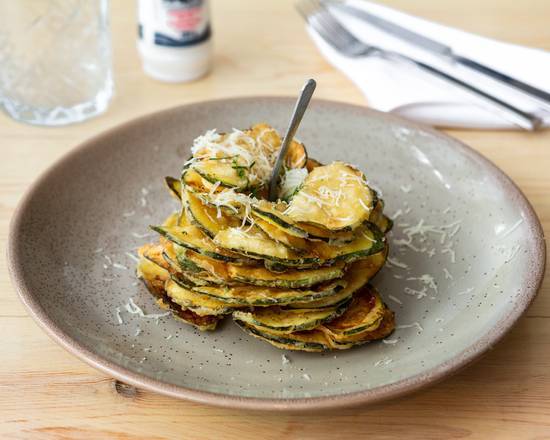 Lightly fried zucchini chips and eggplant served with tzatziki